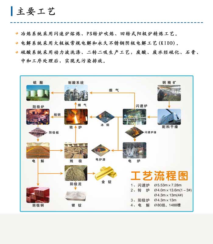 主要工艺Q?/strong>冶炼pȝ采用闪速炉熔炼、PS转炉吹炼、回转式x炉精炼工艺。电解系l采用大?..   >>详细信息